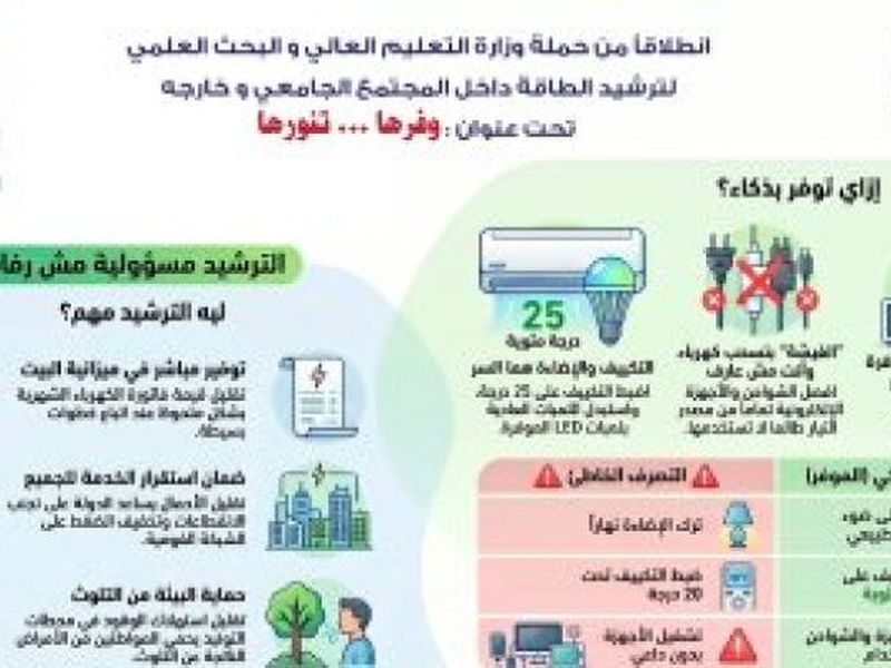 انطلاقًا من مسؤوليتها الوطنية، واتساقًا مع توجهات الدولة المصرية في تحقيق الأمن القومي للطاقة، وترجمةً عملية لمبادرة وزارة التعليم العالي والبحث العلمي "وفرها.. تنورها"، اعتمدت جامعة دمنهور الأهلية استراتيجية مؤسسية شاملة لترشيد استهلاك الطاقة ورفع كفاءتها داخل كافة منشآت الحرم الجامعي.