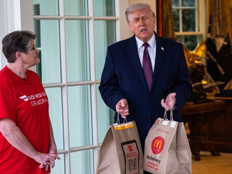 وبثت يوم الاثنين محطات التلفزيون الأمريكية لقطات لعامل توصيل من شركة "DoorDash" وهو يسلم طلبا من ماكدونالدز مباشرةً إلى البيت الأبيض.