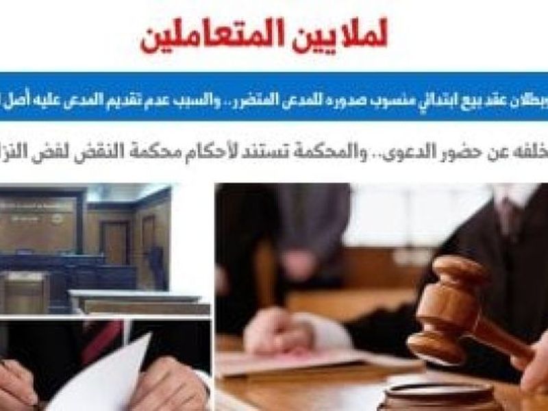 لملايين المتعاملين.. حكم قضائى برد وبطلان عقد بيع ابتدائي منسوب صدوره للمدعى المتضرر.. والسبب عدم تقديم المدعى عليه أصل العقد رغم إلزامه.. وتخلفه عن حضور الدعوى.. والمحكمة تستند لأحكام محكمة النقض لفض النزاع